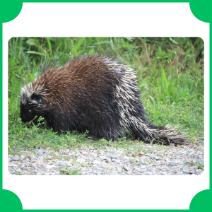 The porcupine is a rodent with long sharp quills on its body. Its name comes from Latin meaning “spiny pig.” It lives in forests and is known for using quills as defense against predators.