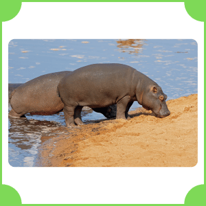 Hippopotamus is a large animal that lives in rivers and lakes in Africa. It has a heavy body and short legs. It moves slowly in water but can walk on land, mostly staying calm during the day.