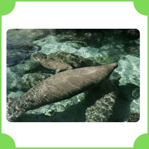 Manatee is a large, gentle marine mammal often called a sea cow. It lives in warm coastal waters and rivers. It moves slowly while swimming and feeds mainly on underwater plants and vegetation.