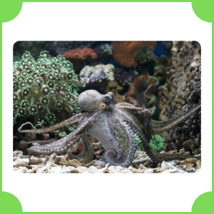 Octopus is a sea animal with eight arms and a soft body. It usually moves slowly by crawling on the ocean floor. It is intelligent and can change color to hide from predators or catch prey.
