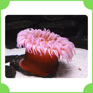 Sea Anemone is a soft-bodied marine animal that looks like a flower. It attaches itself to rocks on the ocean floor. It moves very little and uses its tentacles to catch small fish and food.