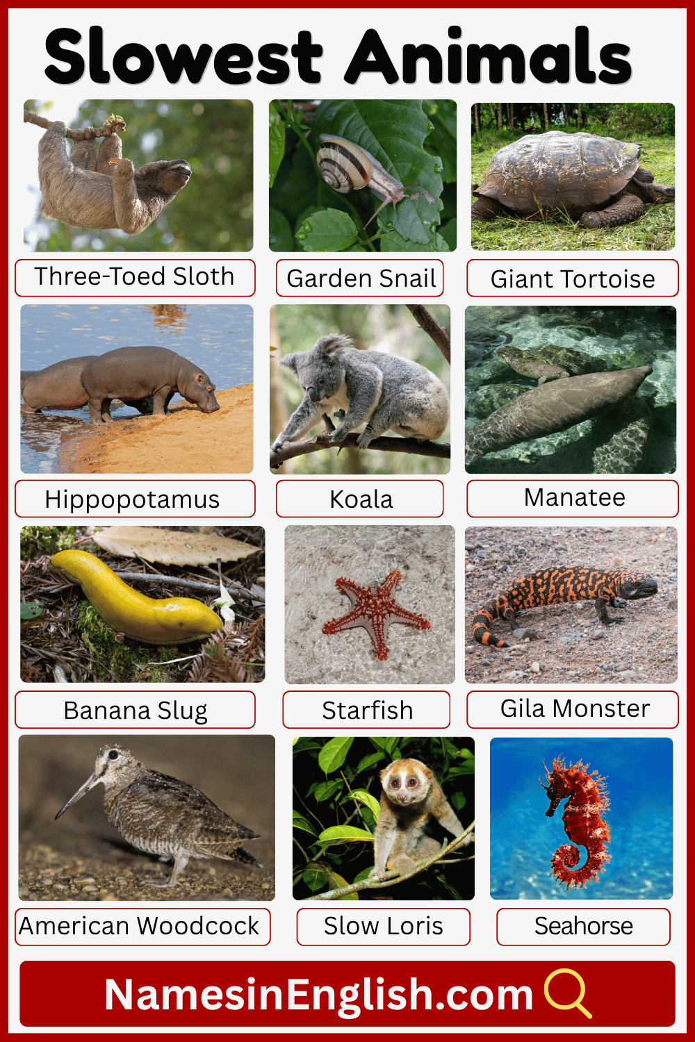 Slow Animals with Names in English with Pictures